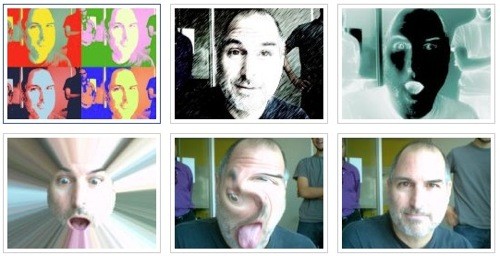 Steve Jobs prueba los filtros de Photo Booth en la oficina de Mike Matas, en 2005.